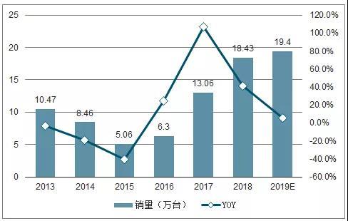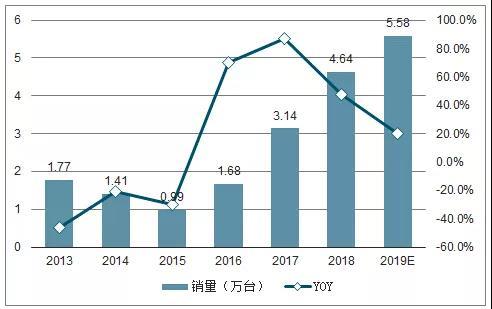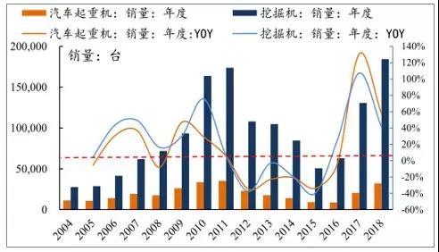 开云(中国)和起重机的应用场景重合度非常高。2018年开云(中国)和汽车起重机销量分别为18.4万台和3.2万台,开云(中国)销量超过历史高点。