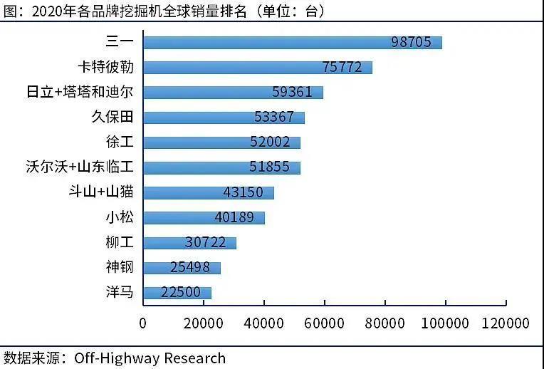 以上两张图分别为:2020年挖掘机品牌在全球销量和在中国市占率情况。